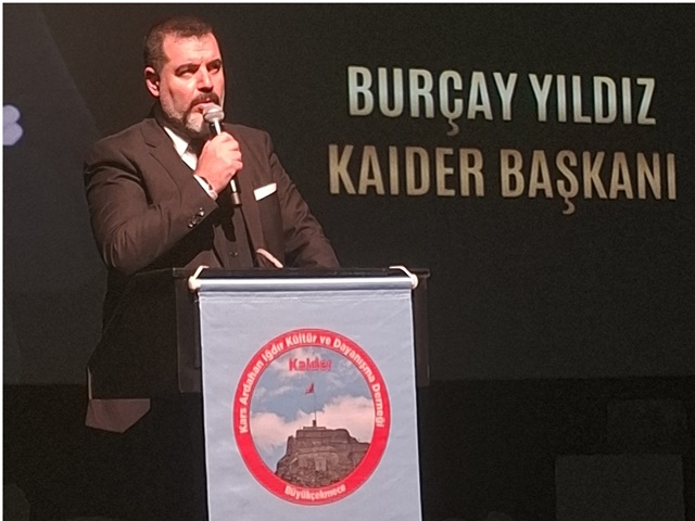 KAİDER Başkanı Burçay Yıldız ise yaptığı konuşmada, 111’nci yılında Sarıkamış Şehitlerini rahmet ve minnetle andıklarını belirtti. YILDIZ, “Sarıkamış Harekâtı; şanlı tarihimizin en hüzünlü fakat bir o kadar da onur dolu sayfalarından biri olarak hafızalarımızda yer almış eşsiz bir yigitlik destanıdır. Sarıkamış Destanı, en az Çanakkale Zaferi kadar önemli; milletimizin kaderini, inancını ve fedakârlığını anlatan büyük bir kahramanlık tablosudur. Özellikle milletimize yön veren idarecilerimizin ve geleceğimize yön verecek genç kuşaklarımızın, ibret alması ve derin dersler çıkarması gereken tarihî bir mirastır. Sarıkamış Harekâtı; yüreklerde taşınan vatan, millet ve bayrak sevgisinin, eşsiz bir sağduyu ve yüksek bir sadakatin, korkularını yenenlerin, ölümü öldürenlerin zaferidir. Sarıkamış Destanı’nı yaşatmak, ona sahip çıkmak; Kars, Ardahan, Iğdır derneklerinin, siyasetçilerinin, sanatçılarının, ilim ve bilim insanlarının, yani biz torunların boynunun borcudur. Değerli misafirler, Sarıkamış’ta soğukla, acıyla yazılan ve karlar altında kalan bu destanın 111’nci yılında, tüm şehitlerimize Allah’tan rahmet diliyor; manevi huzurlarında minnetle eğiliyorum. Sözlerime, büyük ozan Âşık Şenlik’in dizeleriyle son vermek istiyorum: “Can sağ iken yurt vermeyiz düşmana, İsterse Uruset ne ki var gelsin. Can sağ iken yurt vermeyiz düşmana.” diyor Katılımlarınızdan dolayı hepinize saygılarımı sunuyorum.” dedi.