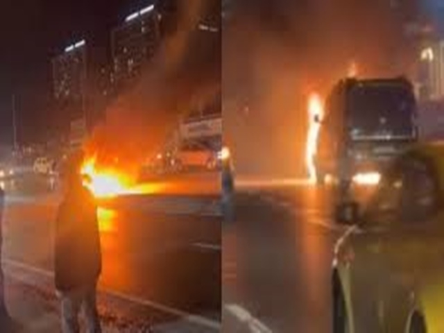 Esenyurt E5’te hafif ticari araç alev alev yandı