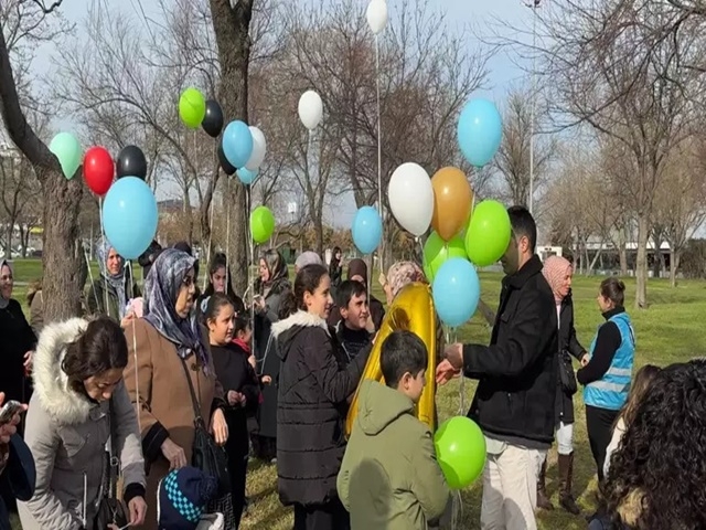 Esenyurt'ta SMA hastası Ömer Asaf'ın tedavi ücretinin tamamlanması balon uçurarak kutlandı