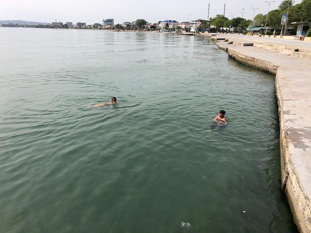 Uzun bir aradan sonra dışarıya çıkan gençler, hava sıcaklıklarının yükselmesiyle birlikte Büyükçekmece Albatros Sahili'nde serinlemek için denize girdi.