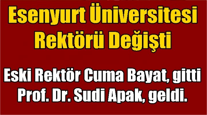 Esenyurt Üniversitesi kurucu rektörü olan Prof. Dr. Cuma Bayat, gitti yerine son kararname ile atanan Prof. Dr. Sudi Apak, geldi.