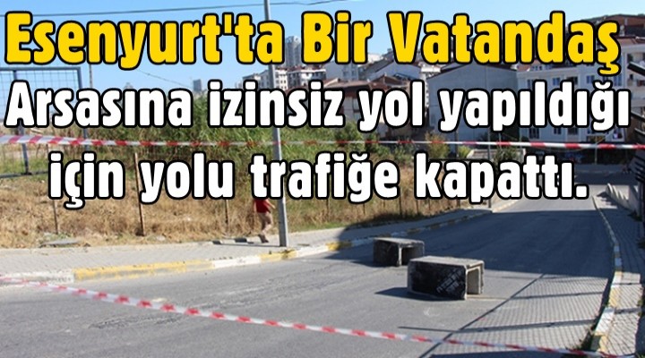 Esenyurt'ta bir vatandaş, arsasına izinsiz olarak yol yapıldığı gerekçesiyle yolu trafiğe kapattı.