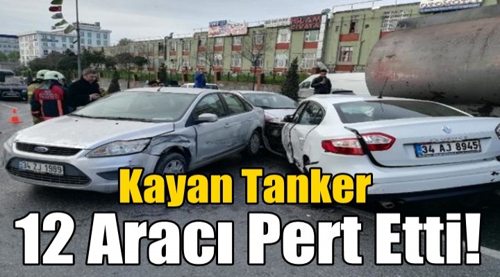 İstanbul Başakşehir'de, tamir için yolun kenarına park edildiği sırada freni boşalarak geriye kayan tanker, 12 aracın karıştığı zincirleme kazaya neden oldu.
