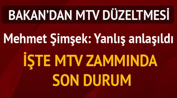 Cumhurbaşkanı Erdoğan, Motorlu Taşıtlar Vergisi zammının Bakanlar Kurulu'nda yeniden görüşüleceğini açıkladı. Ekonomiden Sorumlu Başbakan Yardımcısı Şimşek de önce "MTV, tamamen 2018'in başından itibaren alınacak sıfır araçlardan alınacak" dedi, sonra düzeltme yaptı.
