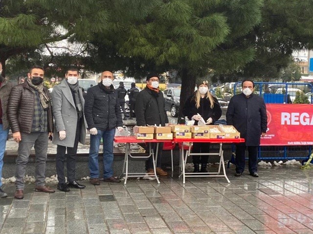 MHP Esenyurt İlçe Başkanı Halil Kaval, Koza Mahalle Muhtarı Cavide Karakülah, ve MHP ilçe yöneticileri ile birlikte Esenyurt Cumhuriyet Meydanında bugün Esenyurtlu vatandaşlara Gül suyu ve Lokum ikram edilerek dağıtıldı.