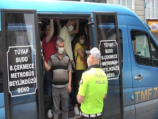 Corona virüs ile mücadele kapsamında toplu taşıma araçlarına yönelik sürdürülen denetimler sırasında Esenyurt’ta içinde 17 kişinin olması gereken minibüsten 35 yolcu çıktı.
