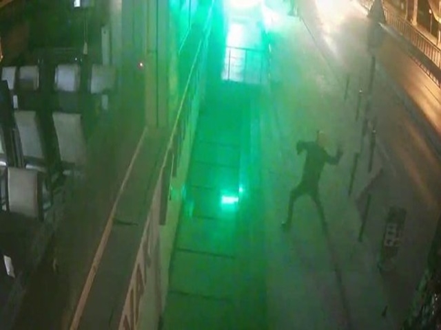 Olaydan yaklaşık bir saat sonra ise kimliği belirlenemeyen bir şahıs, dükkânın önüne gelerek camları taşlamaya başladı.