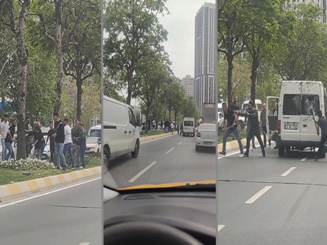 Esenyurt'ta trafikte başlayan tartışma sopalı kavgaya dönüştü. Ellerinde sopa ve kürek bulunan iki kişi, bir minibüsün camlarını kırdı. O anlar başka bir sürücü tarafından cep telefonu ile kaydedildi.