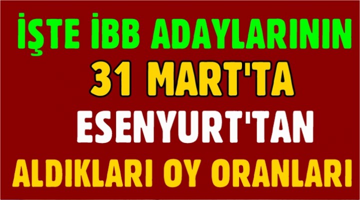 İşte 31 Mart’ta İBB Adaylarının Esenyurt’ta aldığı Oy Oranları