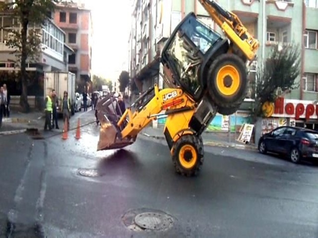 Değiştirilen eski hatların çıkarılması için bir kepçe kullanıldı. Görevliler, yerin altında çelik halata bağlanan kabloların çekilerek çıkarılabilmesi için bir kepçe getirdi. Halatın ucu kepçeye bağlanırken, kepçe operatörü kabloları çekip çıkartabilmek amacıyla çalışmaya başladı. Bu çalışma sırasında aracın arka lastikleri yerden metrelerce havalanırken, kepçe ön iki lastiği üzerinde kaldı. Bu sırada halatın kopmaması, savrulmaması veya kepçenin bağlı olduğu yerden kurtularak yanından geçen diğer araçlarda bulunanların olası bir tehlike ile karşılaşması şans olarak değerlendirildi.