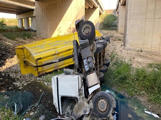 Kamyon yaklaşık 20 metre yükseklikteki viyadükten sürücü ile birlikte aşağı düştü.