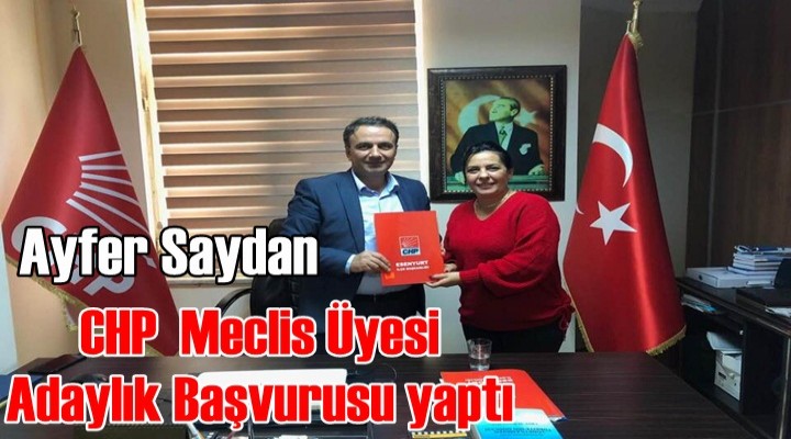 Ayfer Saydan, CHP’den Esenyurt Belediye meclis üyesi Aday Adayı oldu. Bugün CHP Esenyurt İlçe Başkanlığı’na giden Ayfer Saydan, Aday Adaylığı başvuru dosyasını CHP Esenyurt İlçe Başkanı Ali Gökmen’e teslim etti.