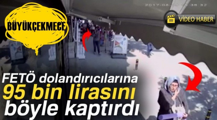 Büyükçekmece’de kendisini polis olarak tanıtan kişi veya kişiler, Nurayet Şahsıvar (52) isimli kadını arayarak" FETÖ mensupları şuanda sahte kimlik ile aracınızı noterde satıyor" diyerek yaşlı kadının 95 bin lirasını dolandırdı. Dolandırıcıların yaşlı kadını takibi, kadının parayı bırakması ve şahısların parayı alıp kaçma anları saniye saniye güvenlik kameralarına yansıdı.