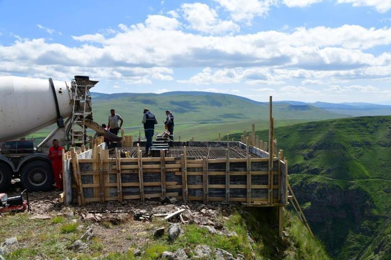 Ardahan'ın Çıldır ilçesindeki Karaçay Kanyonu'nun ortasında yer alan kayalıkların zirvesine kurulu tarihi Şeytan Kalesi'nin hakim noktadan izlenmesi için seyir terası yapımına başlandı.